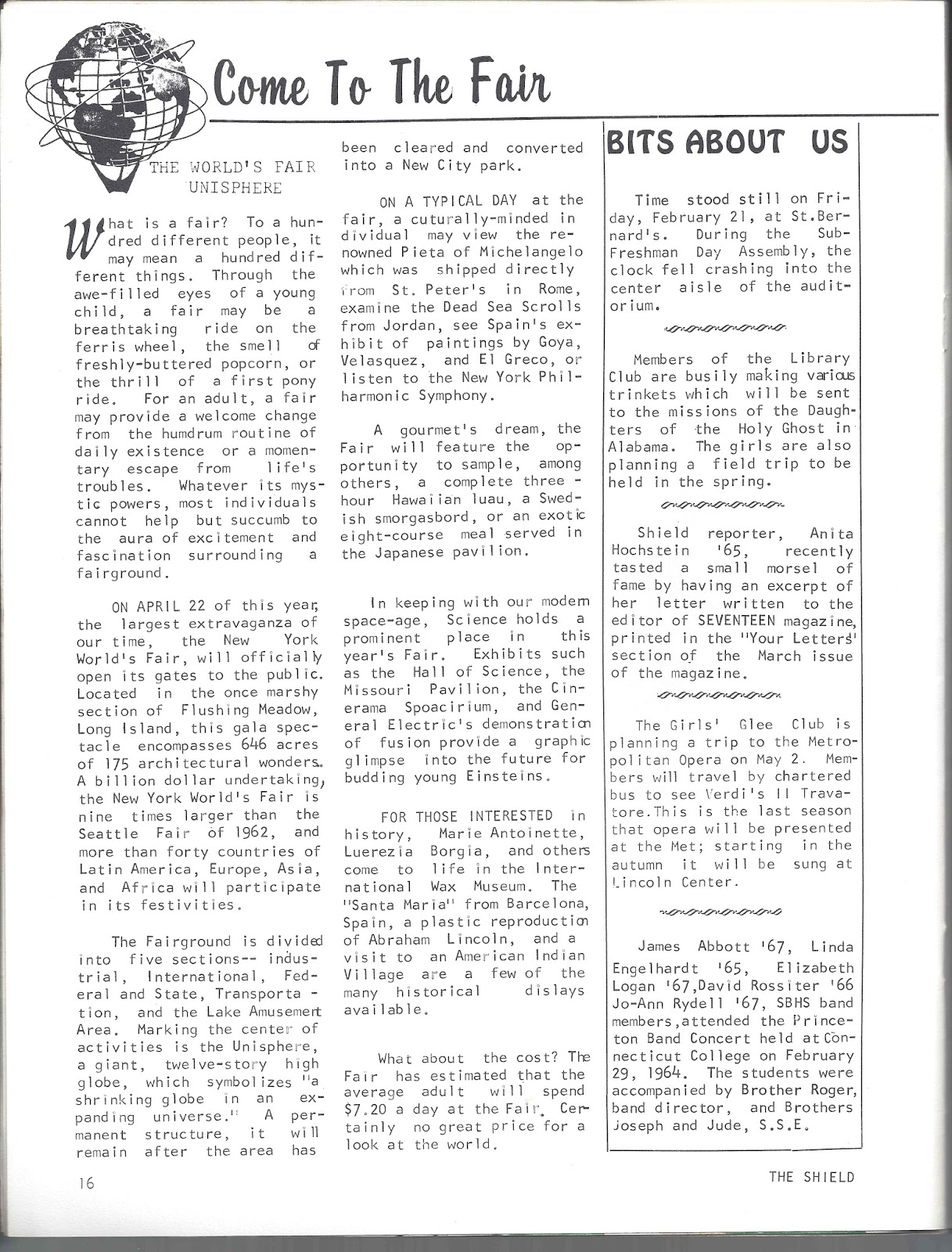 The Shield March 1964. Looks like the staff got into the "Wearin' o' the Green"! Our own Richard Englehardt '67 graces the cover!